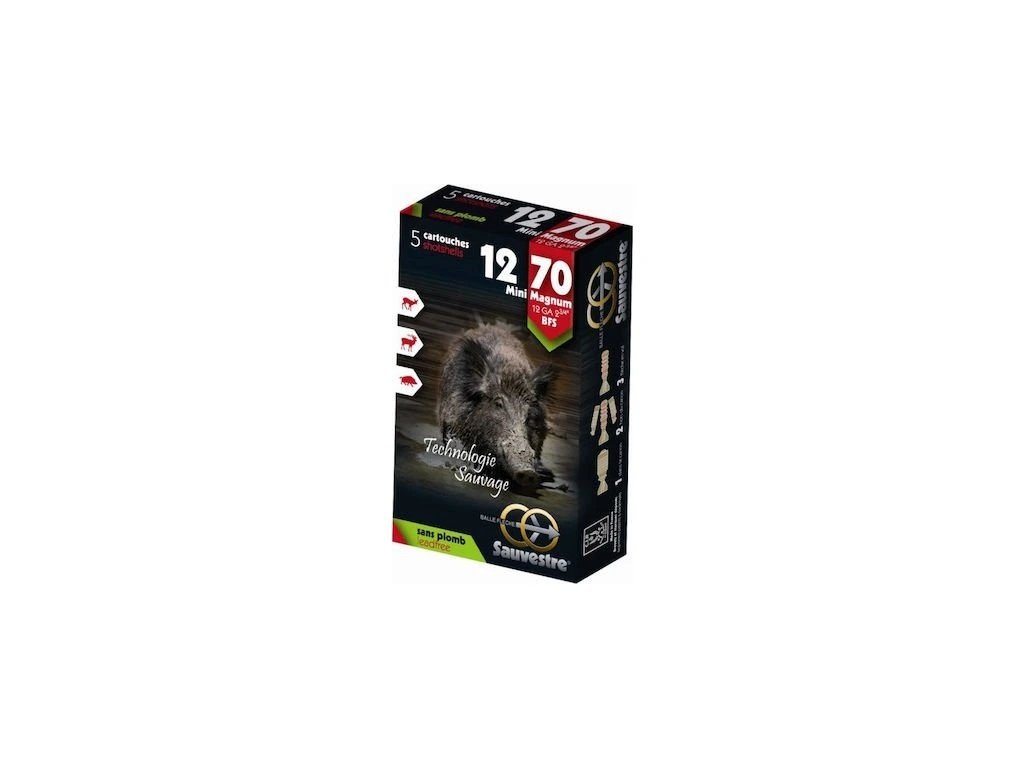 Balení 5 ks prémiového brokového střeliva od francouzského výrobce Sauvestre. Každý náboj obsahuje podkaliberní jednotnou střelu BFS Mini Magnum ze slitiny s polymerovým stabilizátorem a sabotem.