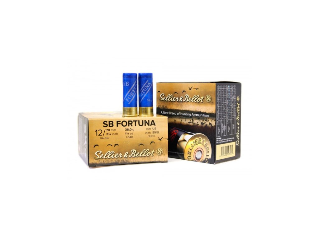 Oblíbené brokové náboje - střelivo českého výrobce, firmy Sellier & Bellot v ráži 12x70 v plastové nábojnici s košíkem.