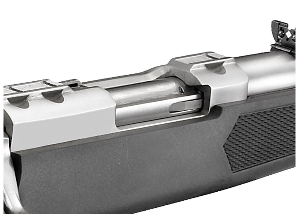 Opakovací puška Ruger K/77-357-RSP s integrovanými drážkami na montážní kroužky přímo na kovovém těle, které zajišťují stabilní úchyt pro optiku. Třípolohová pojistka umožňuje zajistit spoušť i závěr, nebo pouze spoušť, lze tak pohodlně přebít zbraň i se zajištěnou spouští.