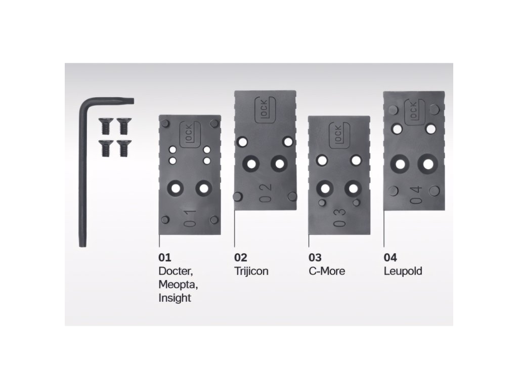 Kompatibilita: Pistole Glock MOS a kolimátory značek Docter, Meopta, Insight, Vortex, Burris, Trijicon, Holosun (vyjma modelů 509, 407K, 507K, EPS MRS & EPS Carry), dále Ameriglo, C-More, Leupold Delta Point a EOTech.