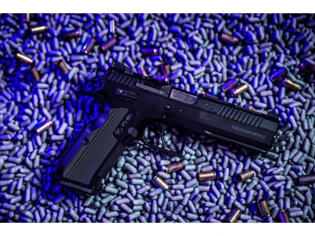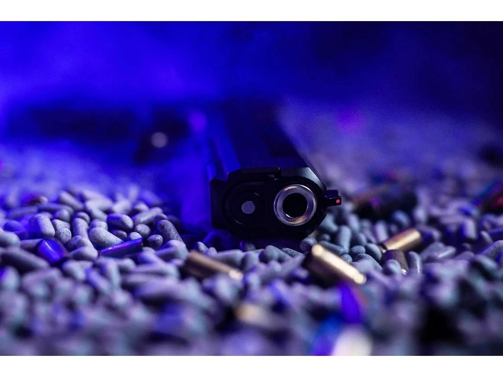 Rám doplňují duralové střenky a protiskluzová textura na přední a zadní straně rukojeti. V základní výbavě nechybí ani rozšířený hmatník levé pojistky a plochý hmatník pravé pojistky. Rozšířené tlačítko pro vypouštění zásobníku je nastavitelné.
