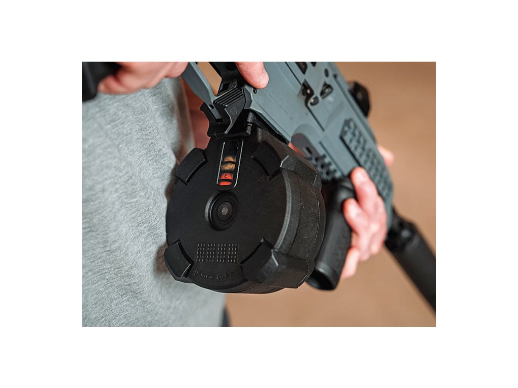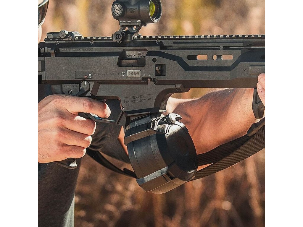 Odolný bubnový zásobník pro CZ Scorpion EVO s kapacitou 50 nábojů v ráži 9 mm Luger od renomovaného amerického výrobce Magpul. Zásobník má zvýrazěnný oranžový podavač, nerezovou pružinu a okna pro kontrolu kapacity.