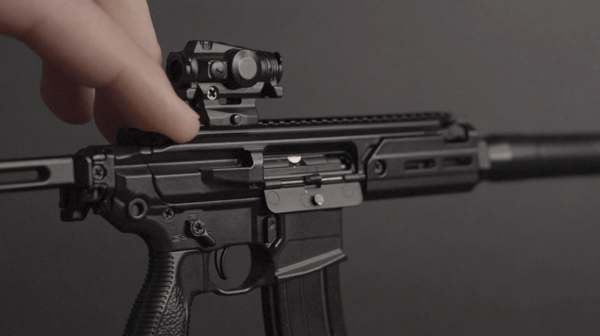 K dalším interaktivním prvkům patří sklopná pažba a tlumič, který je možné našroubovat na úsťové zařízení, stejně jako u originálu. Nemůžeme také opomenout dodávaný kolimátor.