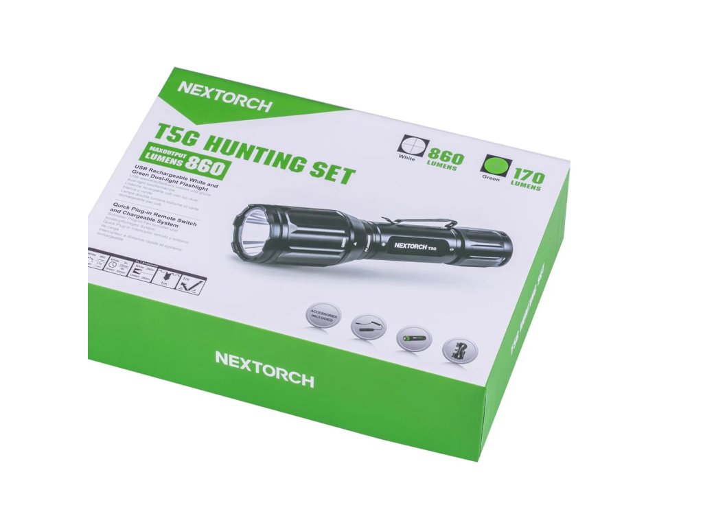 Svítilna Nextorch T5G V2.0 Hunting set promění vaše lovecké zážitky díky technologii dvou LED diod, která vám poskytne bílé i zelené osvětlení na dosah ruky. Když se stopování stane kritickým, nebo se v soumraku objeví trofejní jelen, tento sofistikovaný systém s dvojím osvětlením poskytne ohromující bílé světlo o síle 1200 lumenů pro maximální viditelnost a speciální zelenou LED diodu o síle 170 lumenů, která vaši kořist nevystraší.