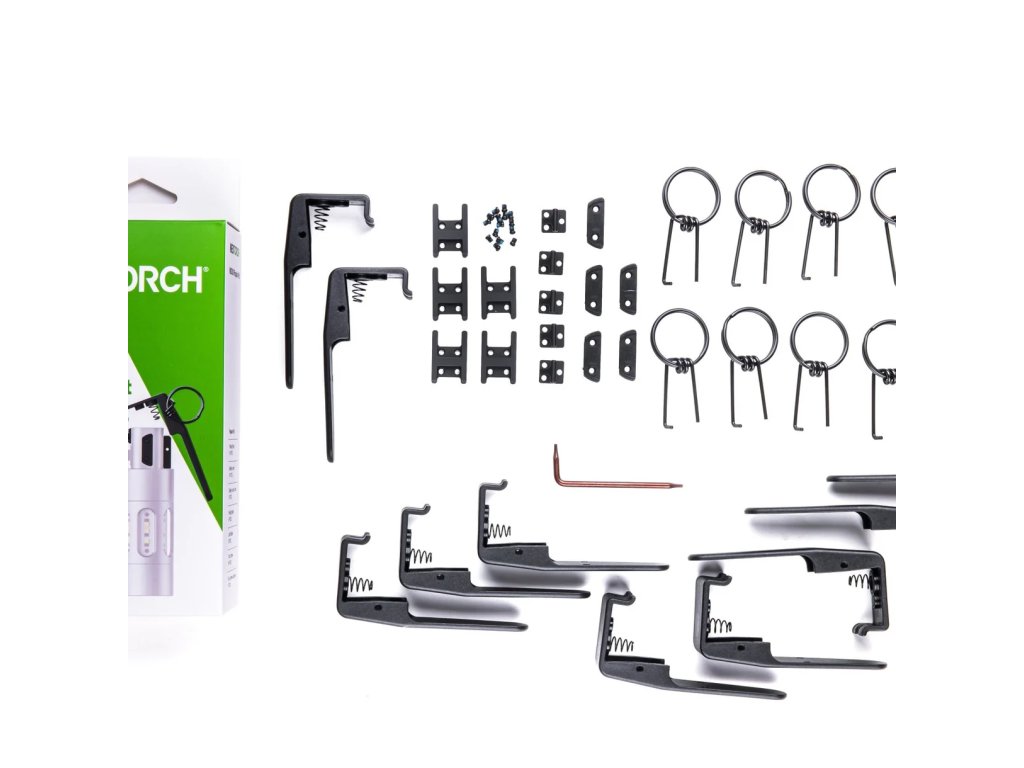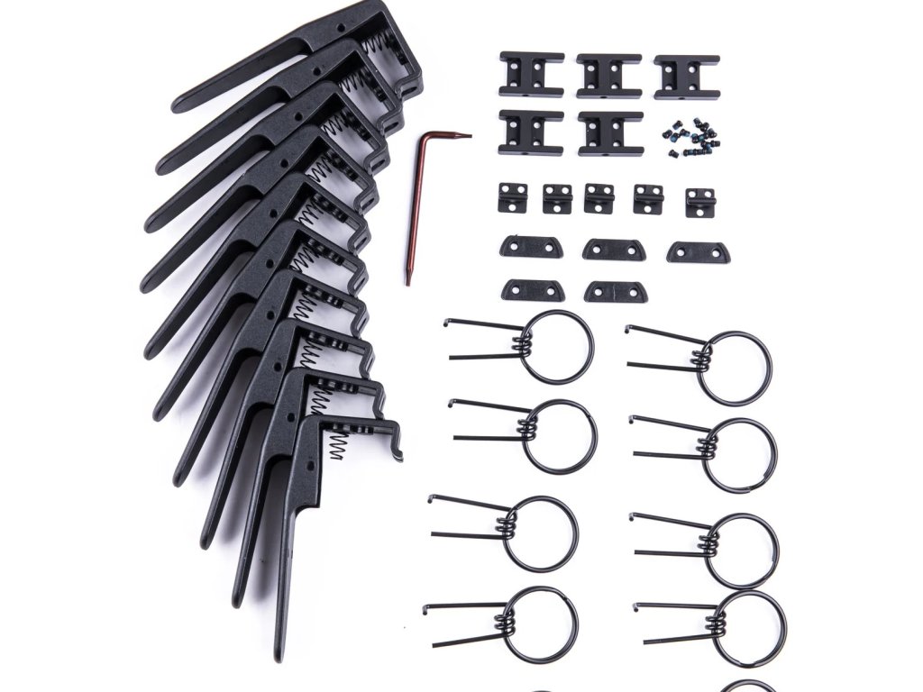 - Snímatelný hardware (5 bezpečnostních pák, 5 upevňovacích bloků, 5 zamezovacích bloků)
