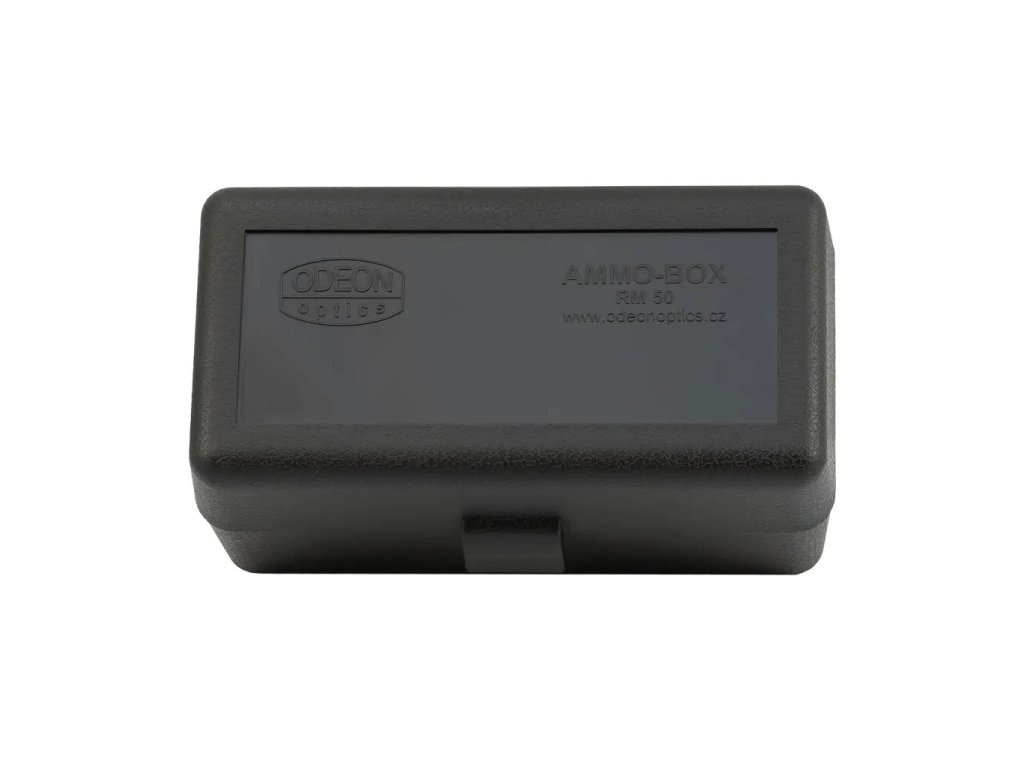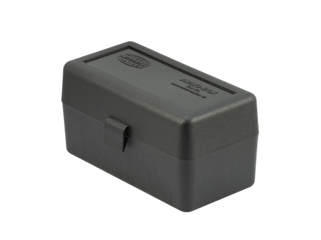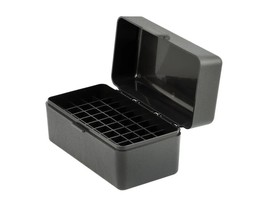 Uzavíratelná krabička pro 50 ks nábojů různých ráží (.243 WIN / .308 WIN / .30-30 WIN / 6,5 CREED / 8x57). Spodní a vrchní díl je oddělitelný.