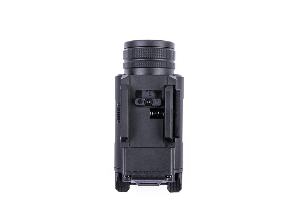 Konstrukce je optimalizována pro spolehlivost při zpětném rázu i dynamickém nasazení. Rychloupínací montáž na lištu umožňuje okamžité nasazení nebo sejmutí, zatímco přední přístup k bateriím dovoluje jejich výměnu bez nutnosti demontáže svítilny ze zbraně.