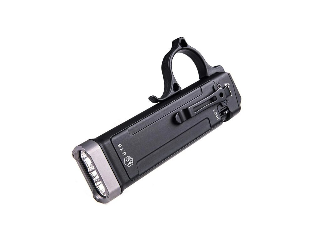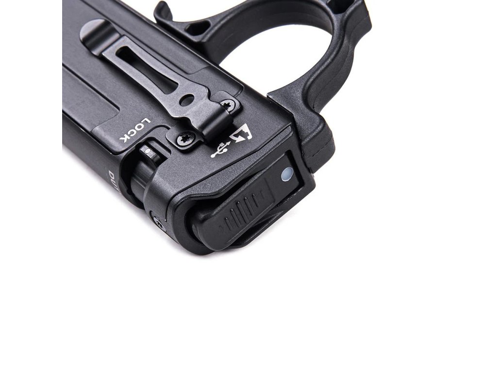 Dvoustupňový taktický spínač: poloviční stisk aktivuje plný výkon, plný stisk spustí stroboskop.