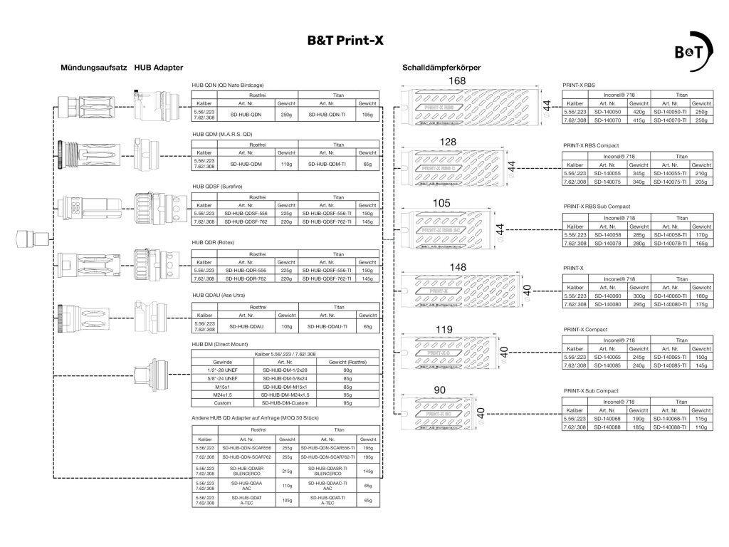 Tlumič B&T RBS PRINT-X Sub-Compact, Titan, .223 REM, B&T HUB