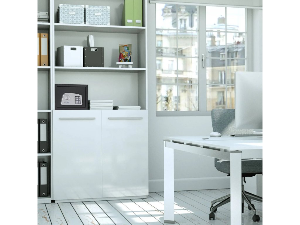 Sejf poskytuje dostatek prostoru pro uložení drobných cenností, osobních dokladů, hotovosti, hodinek nebo menších šperků. Vyjímatelná police umožňuje přizpůsobit vnitřní prostor podle aktuálních potřeb.