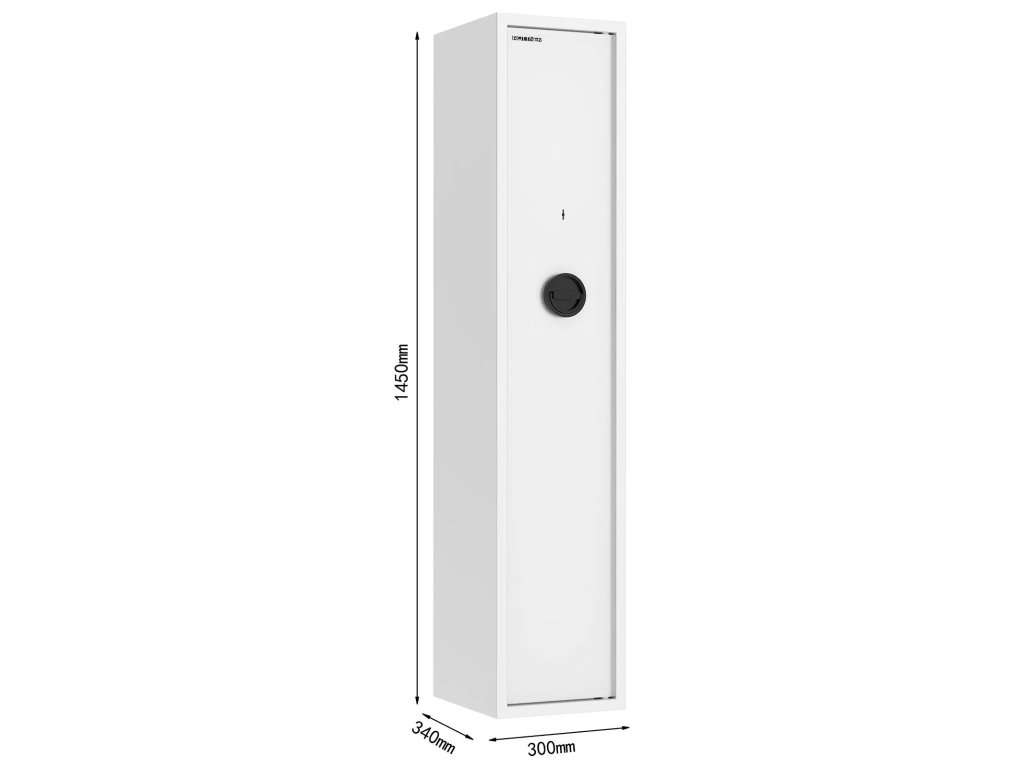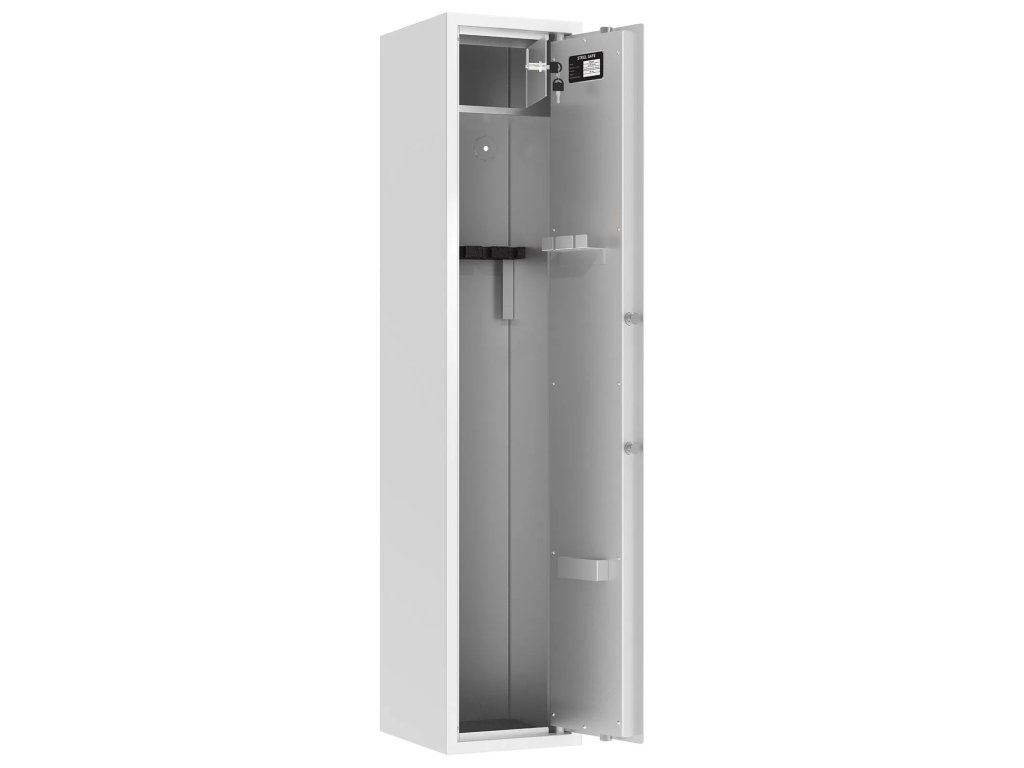 Bezpečnostní skříň určená pro uložení až 5 dlouhých zbraní splňuje požadavky české legislativy na bezpečné uschování zbraní a střeliva. Certifikace S1 dle ČSN EN 14450 a minimální odolnost 15 RU dle ČSN EN 1143-1 zajišťují odpovídající úroveň ochrany.