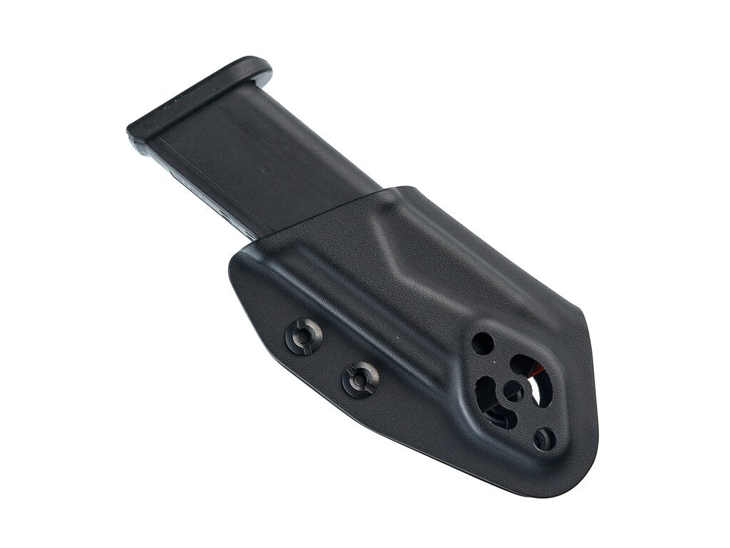 Pouzdro je navrženo tak, aby bezpečně pojalo zásobníky různých značek a velikostí – od Glock přes CZ až po další běžné modely. Univerzální konstrukce umožňuje flexibilitu bez kompromisů v pevnosti držení.