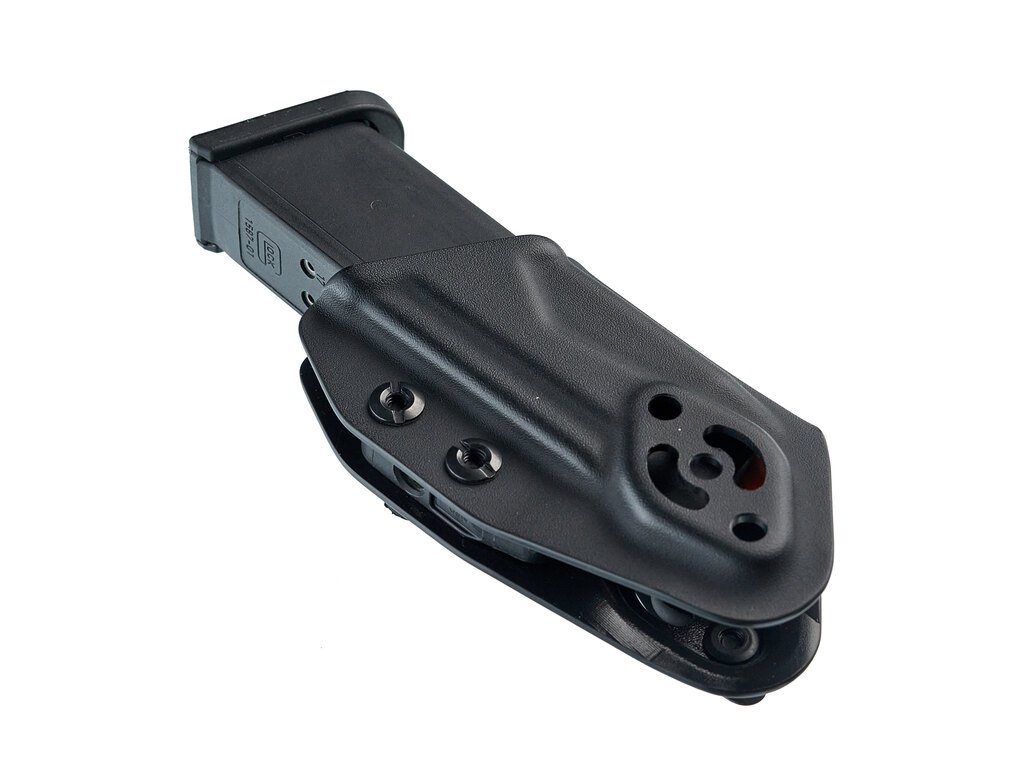 Konstrukce z odolného Kydexu je tvarována pomocí horkého vzduchu a přesného lisování, což zajišťuje spolehlivou retenci a přesné obepnutí zásobníku. Výsledkem je jistota při nošení i rychlý, plynulý přístup bez zadrhávání.