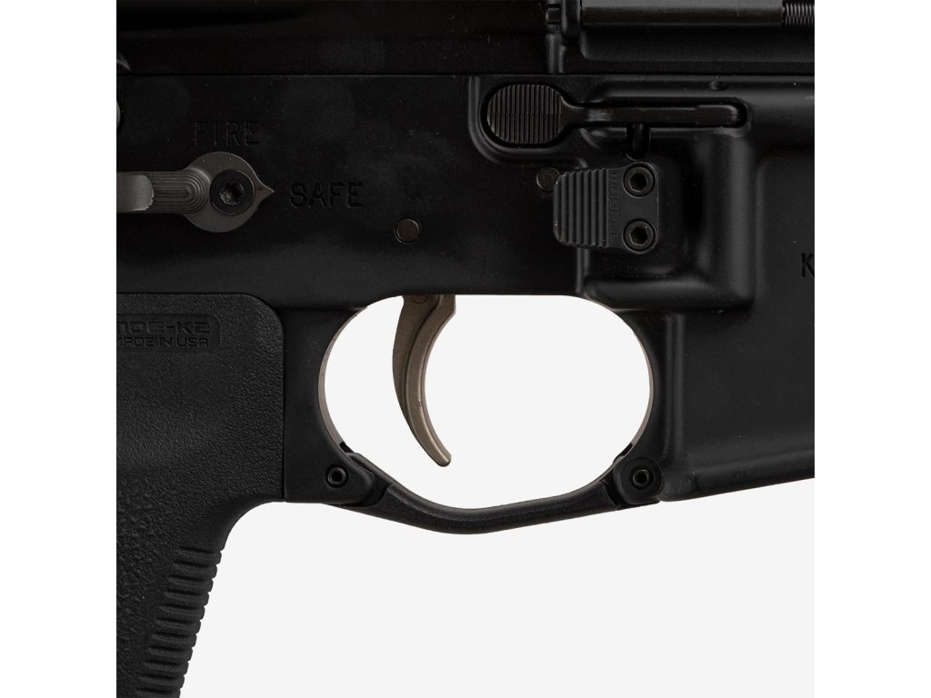 MOE Enhanced Trigger Guard má ergonomický a zvětšený design, který umožňuje pohodlné ovládání i v rukavicích nebo při střelbě v chladném prostředí. Navíc zakrývá nepříjemnou mezeru v zadní části standardního lučíku. Kompatibilní je i s většinou platforem 7,62x51 AR, i když v některých případech může být nutné drobné doladění.