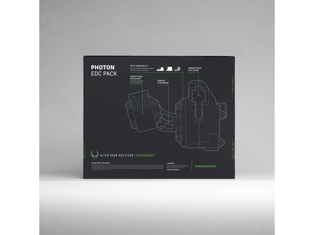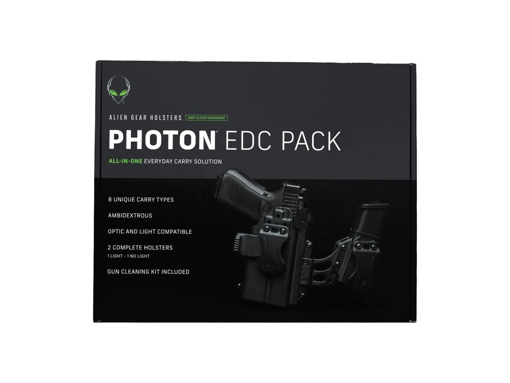 Photon EDC Pack pro Glock 19 od Alien Gear Holsters je kompletní sada pro každodenní nošení, která vám nabízí více možností jak nosit svou zbraň. Dvě pouzdra, zásobníkové pouzdro a sada pro čištění zajistí, že budete vždy připraveni. Sada obsahuje: